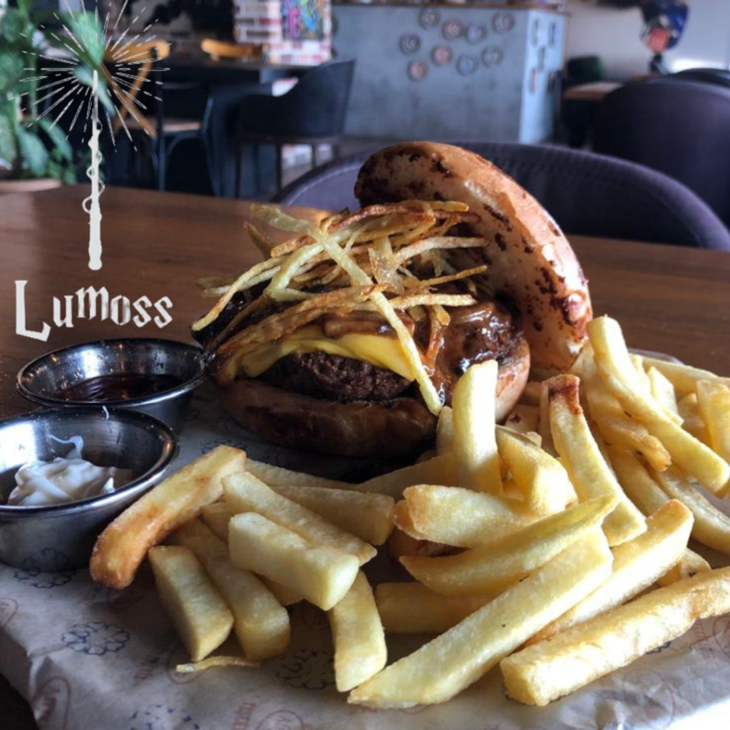 Özel hazırlanmış mantar ve soğan sos, ince kızartılmış patates, cheddar peyniri, patates ile